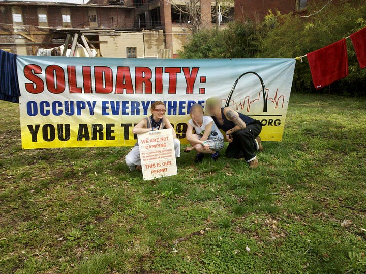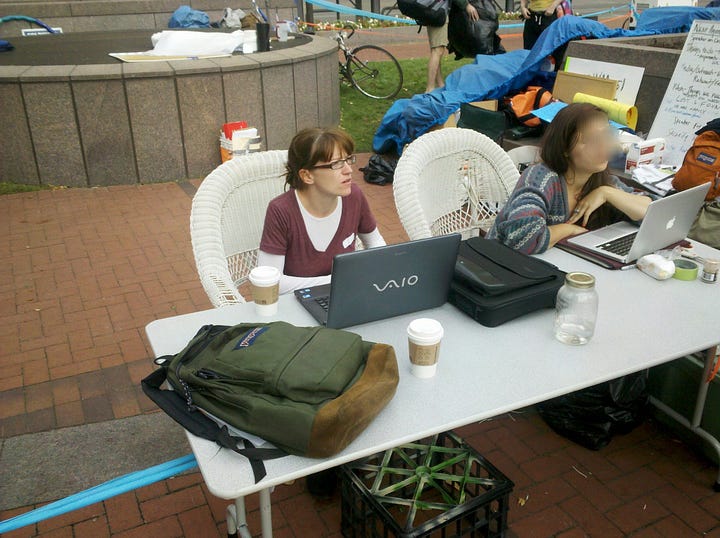 Occupy made me feel more pride for my hometown, and that I had more of a real stake in its future, than anything else. It was the first time in a long time that I didn’t feel the strong urge to find a way to move. I was 28 and about to be divorced, I didn't own a home and was making the most money I'd ever made before then working in operations at a bank for only $14 an hour. I was up to my ears in student loan debt, and I was living in the suburbs with my then-husband and mom, sister, and young niece when Occupy started to save money. When else was I going to get to feel that way? So powerful and actually effectual? It wasn't looking good yet.